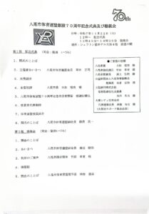 八尾市体育連盟創設70周年記念式典及び懇親会